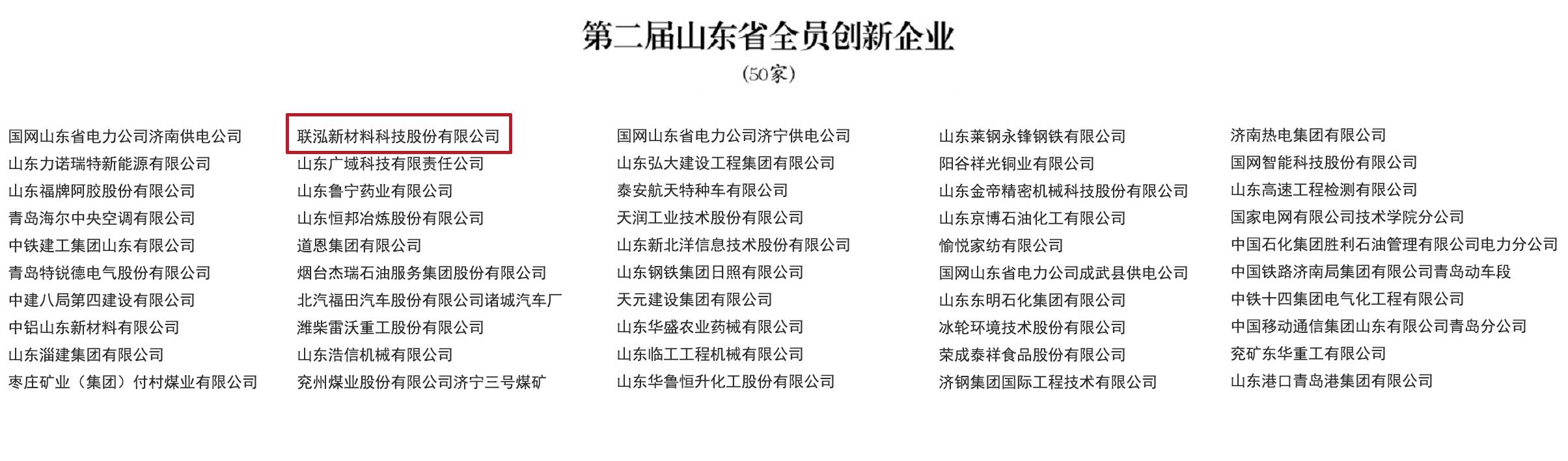 近日,山東省總工會(huì)公布了第二屆山東省全員創(chuàng)新企業(yè)名單。聯(lián)泓新科憑借在化工新材料領(lǐng)域的創(chuàng)新發(fā)展成績(jī),入選第二屆山東省全員創(chuàng)新企業(yè)名單。