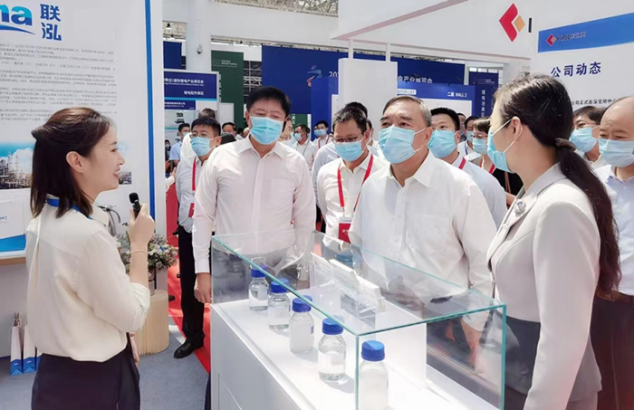 開幕式當(dāng)天,中國上市公司協(xié)會(huì)會(huì)長宋志平在棗莊市市長張宏偉的陪同下來到聯(lián)泓新材料展臺(tái),了解了公司發(fā)展情況、在資本市場(chǎng)的表現(xiàn)和鋰電材料相關(guān)項(xiàng)目。